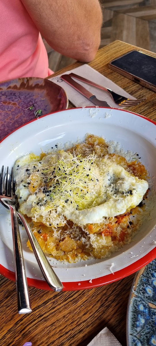 Diréis , ¿Por qué la foto de un plato vacío ? Muy sencillo, estaba todo buenisimo. Muy buen trato y muy buen ambiente. La comida es genial, muy buena relacion calidad precio. No dudes en probar cualquier cosa de carta porque cada cosa es un acierto. Si tienes dudas pregunta, conocen sus platos y te guian sobre lo que te va a gustar mas. Como sugerencia... Las croquetas, el pan bao, los arroces... Como he dicho antes.. TODO. Por cierto, la hamburguesa de buey es de las mejores del pueblo